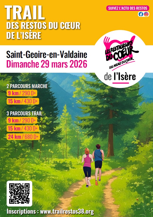 Publié le 18 février 202618 février 2026 par MairieTrail des restos du coeur de l’Isère : le dimanche 29 mars 2026 à St Geoire en Valdaine