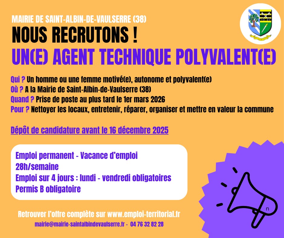 Recrutement à la mairie de Saint Albin de Vaulserre